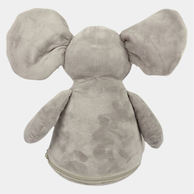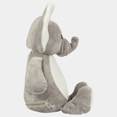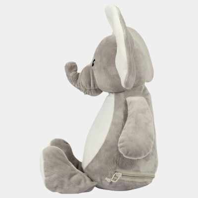 Soft plush elephant. Contrast cream inner ears, feet and front panel. Sewn eyes. Zip access on base for direct access onto the tummy for decoration. Removable inner stuffing. Zip access to both ears for decoration onto ears. Can be embroidered or sublimation printed. Complies with EN71 European Toy Safety regulations. Remove all hang tags and their fasteners before giving these items to a child. Suitable for children of all ages. BSCI certified. SEDEX certified.